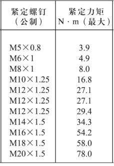 4、用規定的扭矩擰緊緊定螺釘,參照下表。